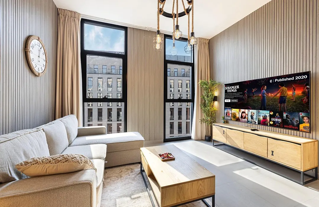 A Big Studio Apartment In Al Mamsha Sharjah - Luxe Minimalist vendégei számára nappalit biztosít, valamint olyan modern kényelmeket, mint a klímaberendezés. Az apartman bidét biztosít a további kényelem érdekében. Továbbá a fürdőszobában hajszárítót és törölközőket talál.